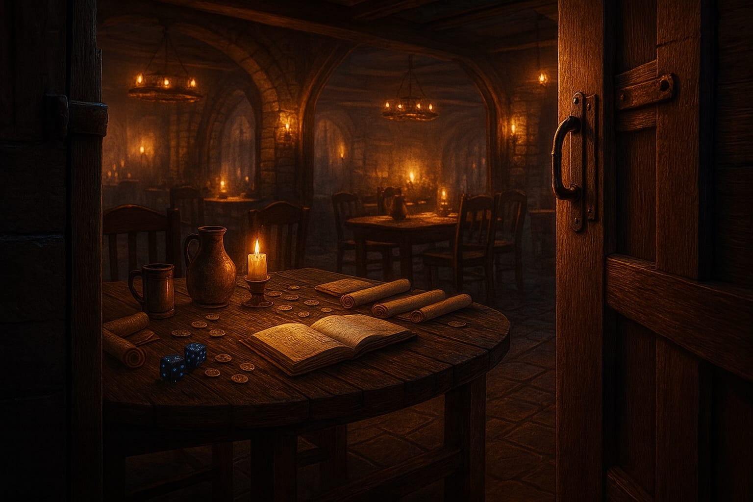 Deine Hand greift zitternd nach dem Türgriff. Noch einmal tief atmen. Dann stößt du die Tür auf. Erstmal mit ihnen reden. Wer weiß, vielleicht sind Miria, Elyan und Breanos gar nicht im Hinterzimmer. Und selbst wenn doch. Ein Gespräch wird dich nicht direkt in die Tiefen Beormeres ziehen.